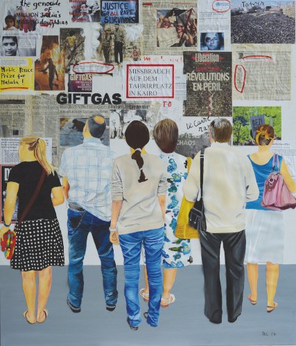 Les Spectateurs et les Acteurs, 2012-2014, technique mixte sur toile, 140x360cm