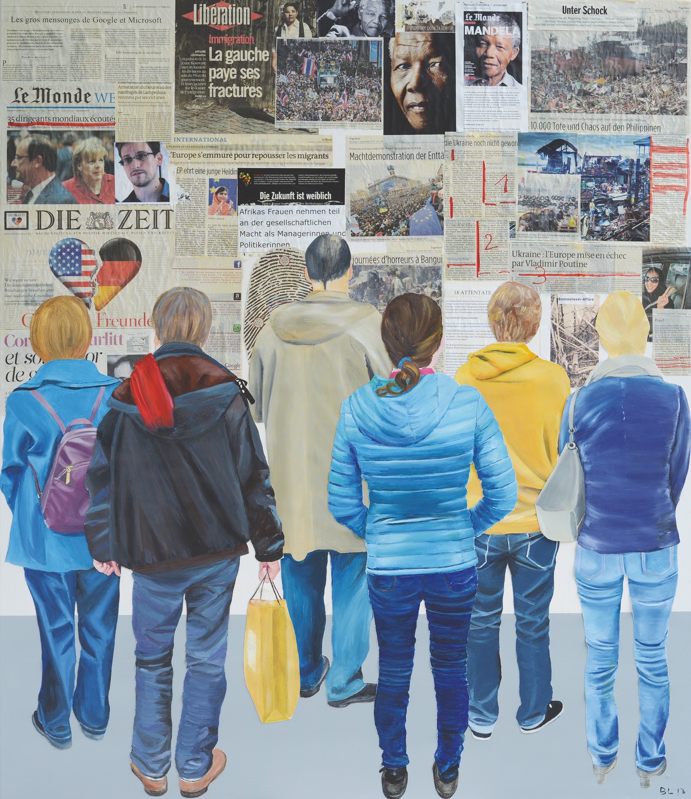 „ Der Schrei „ 2016, journaux collagés, huile et peinture acrylique