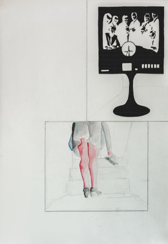 peinture acrylique et sérigraphie sur papier, 64,5x50cm,